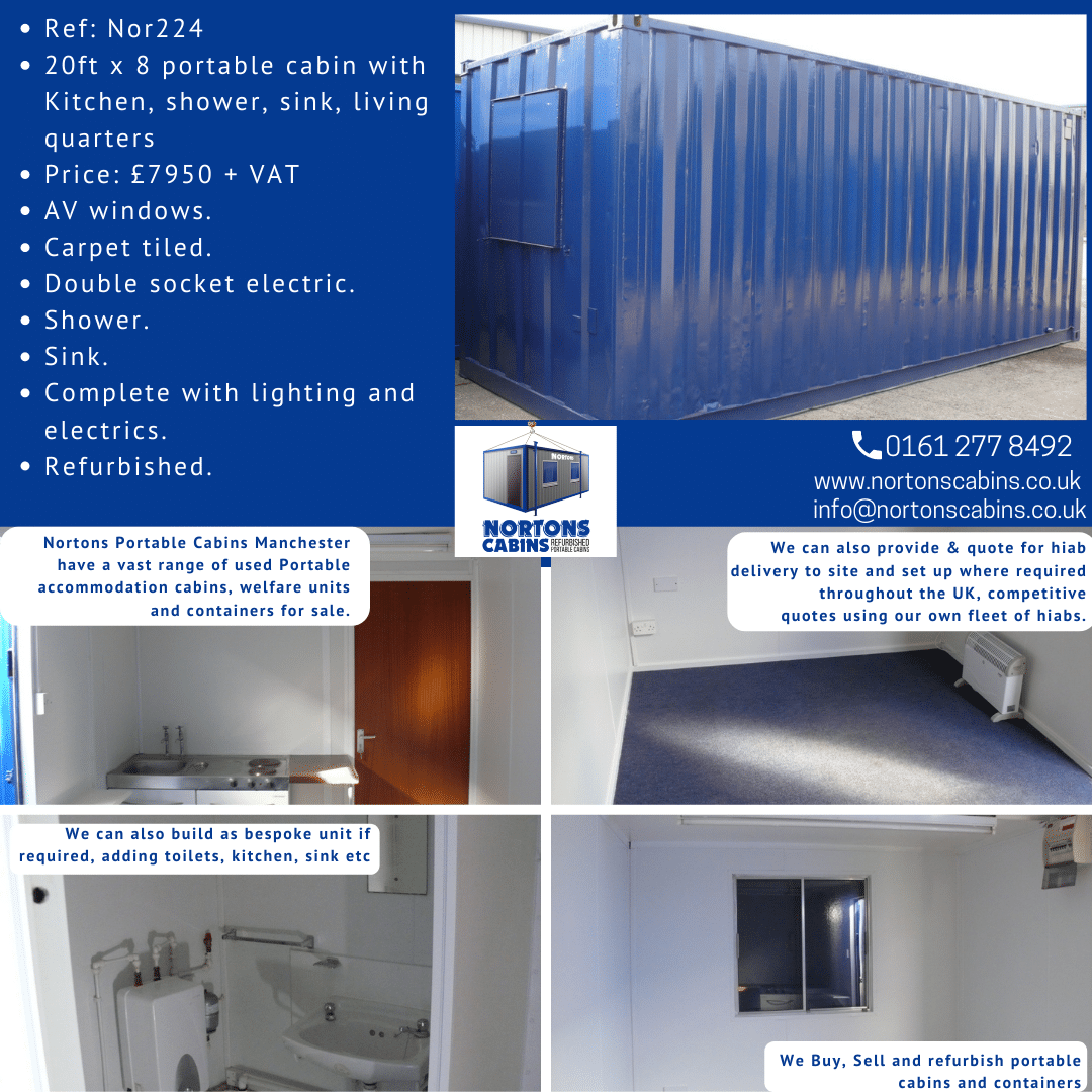 20ft x 8 portable cabin with Kitchen, shower, sink, living quarters