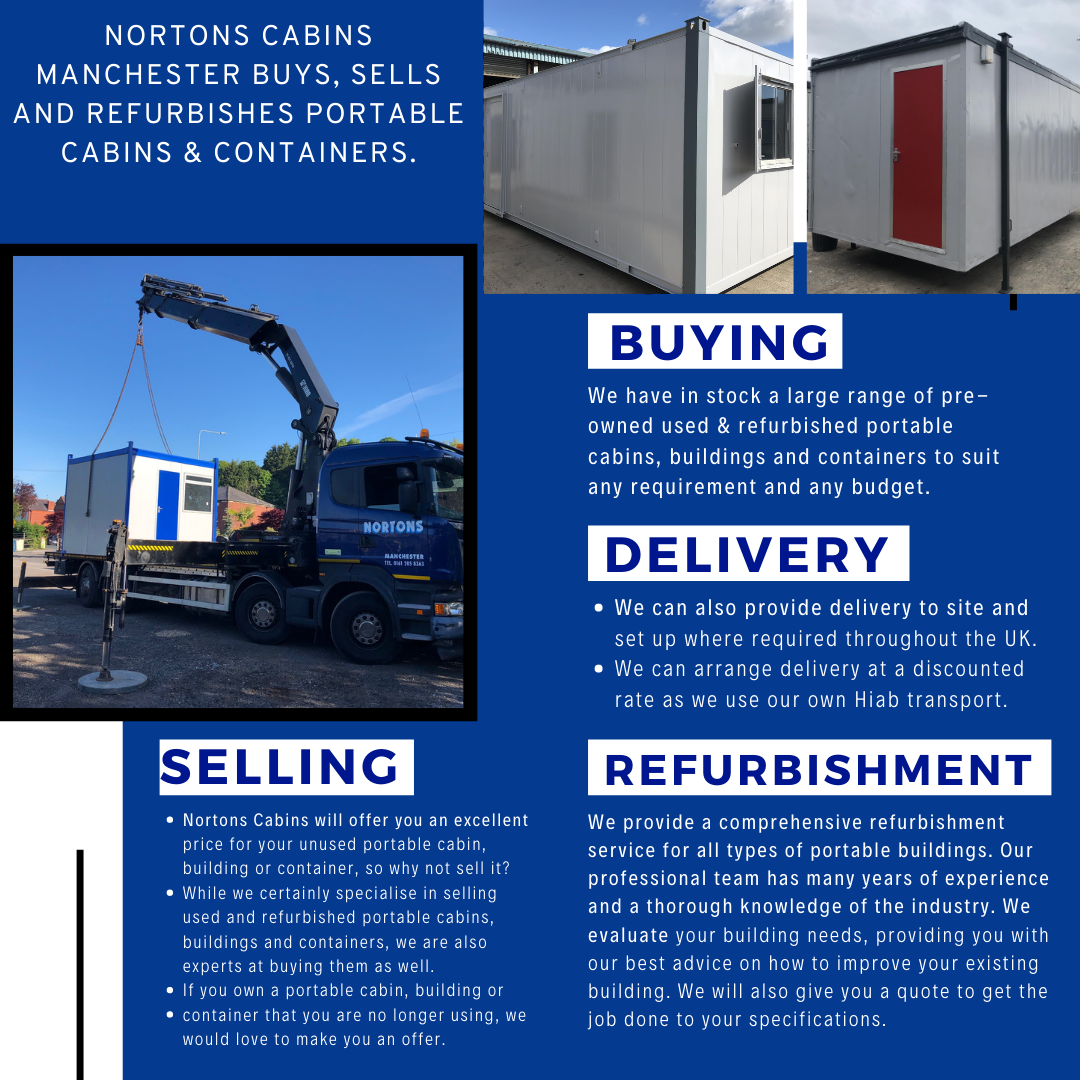 Nortons Cabins Manchester buys, sells and refurbishes portable cabins & containers.