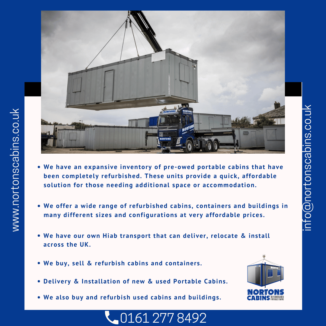 We offer a wide range of refurbished cabins, containers and buildings in many different sizes and configurations at very affordable prices.