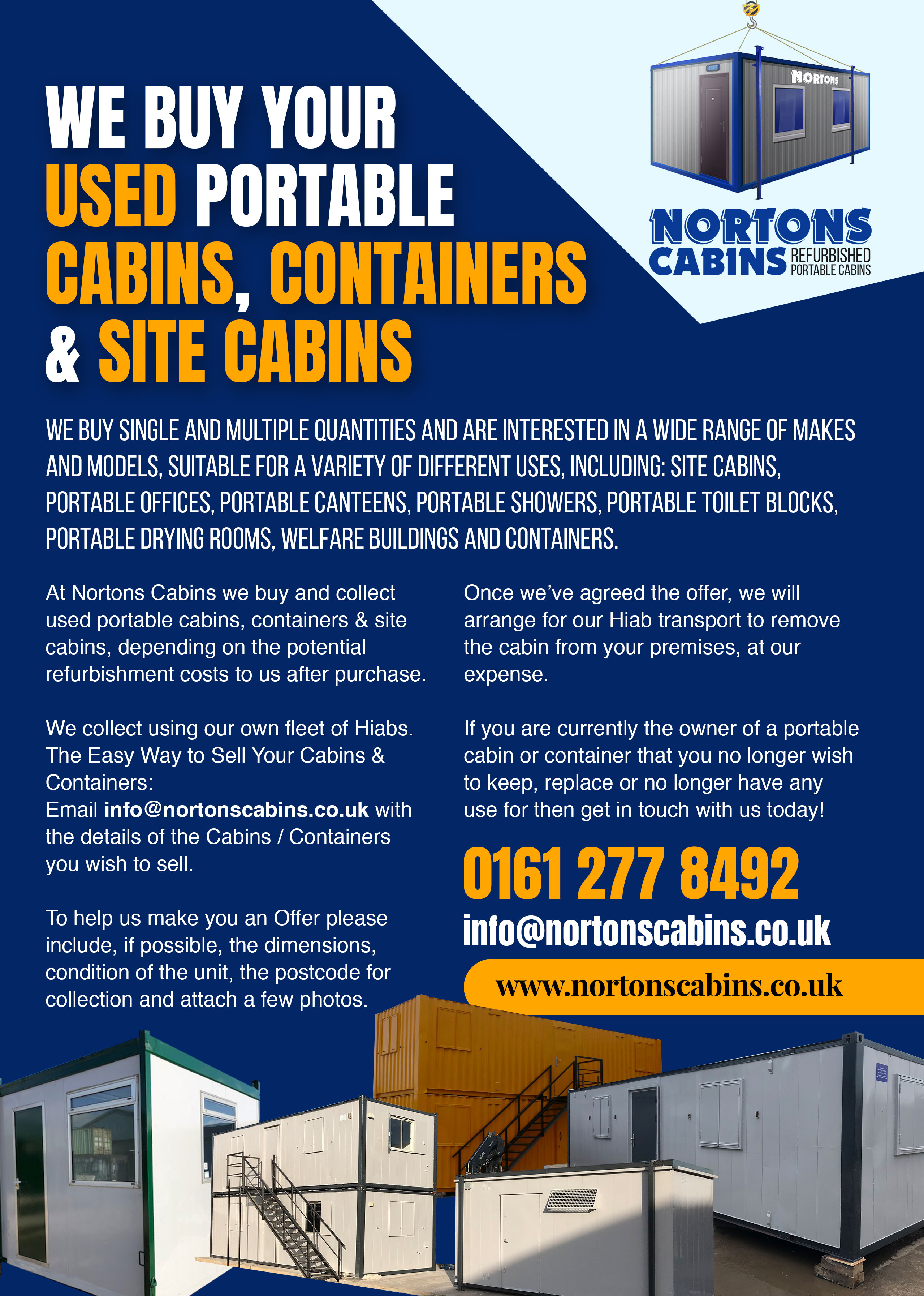 At Nortons Cabins we buy and collect used portable cabins, containers & site cabins, depending on the potential refurbishment costs to us after purchase.